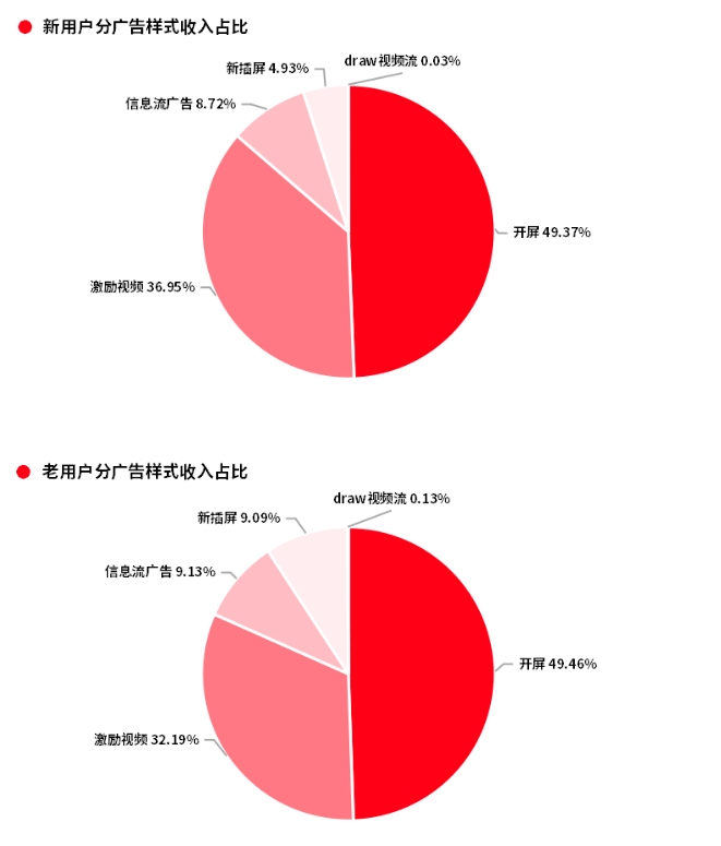 CPM 方面,激励视频最高,依次为激励视频>开屏>新插屏>信息流广告>draw 视频流;